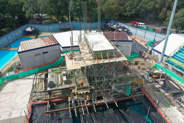 Con varios frentes activos de obra y jornadas diurnas y nocturnas, la Alcaldía de Medellín avanza con la construcción de la nueva plataforma de clavados y el mantenimiento de las graderías, piscina olímpica y otros espacios en el Complejo Acuático de la Unidad Deportiva Atanasio Girardot, que se prepara para recibir los Panamericanos Junior de Natación 2025, en mayo próximo.