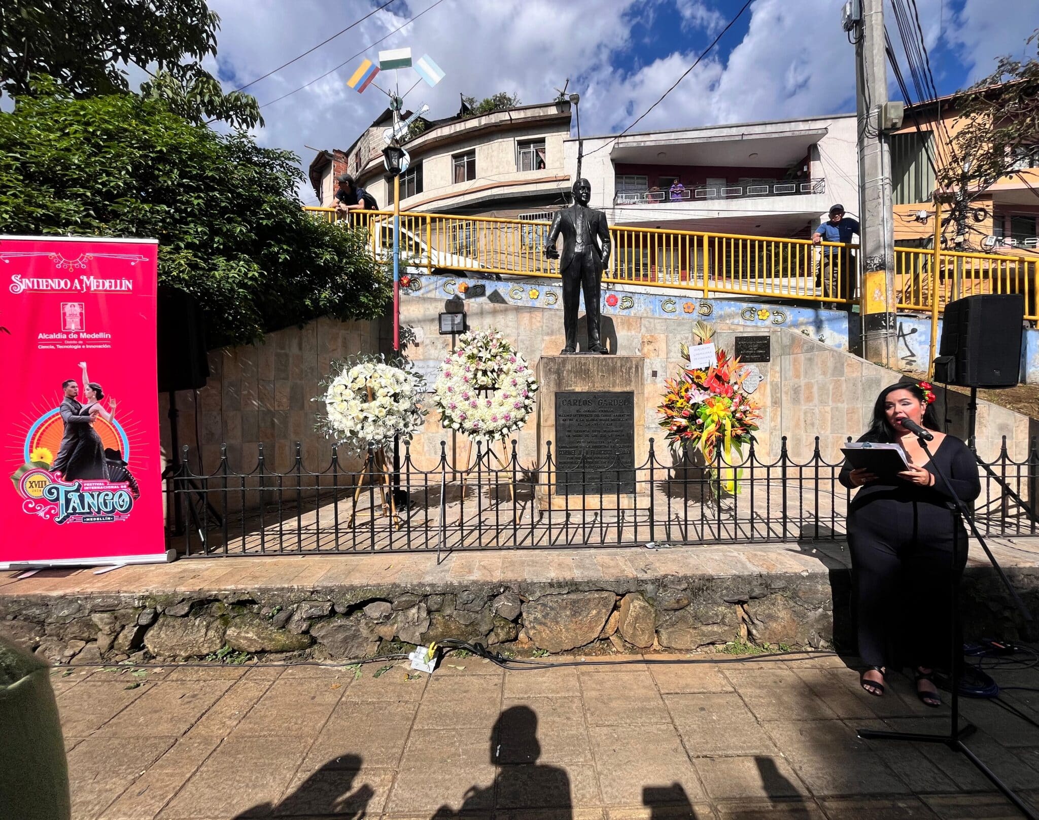En el Patio Gardel, ubicado en las instalaciones del terminal aéreo, hubo una ofrenda floral con acompañamiento de la Escuela de Música de Santa Fe y se hizo una emisión del programa radial “Medellín es una poesía”, con expertos y apasionados por el tango.