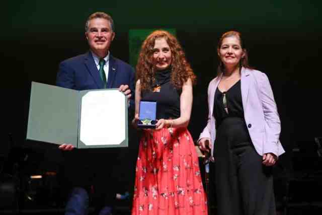 Pie de foto 2: Entrega del Escudo de Antioquia al Vicerrector de la Universidad Nacional de Colombia, sede Medellín, Juan Camilo Restrepo Gutiérrez y a la Decana de la Facultad de Minas, Verónica Botero Fernández.