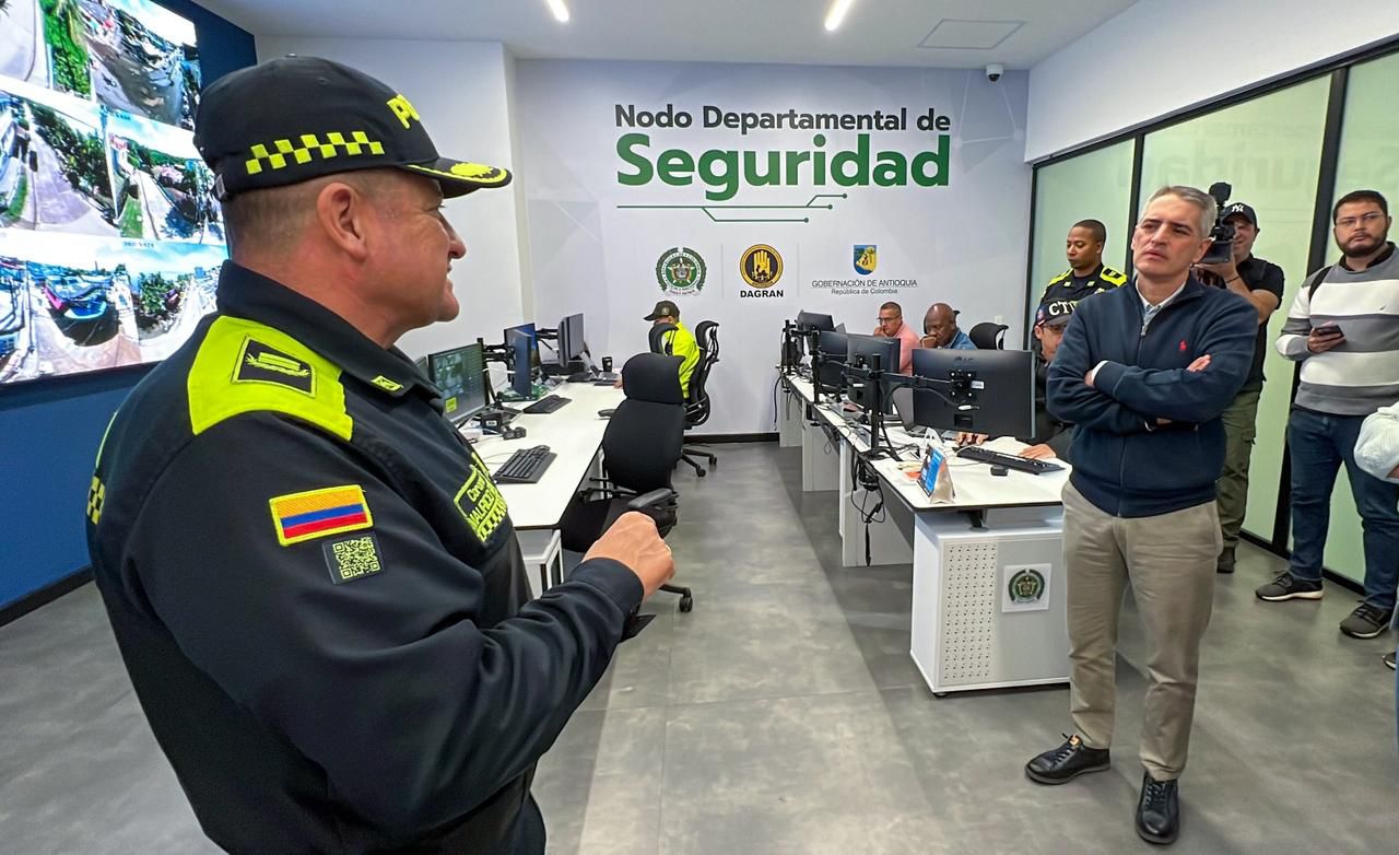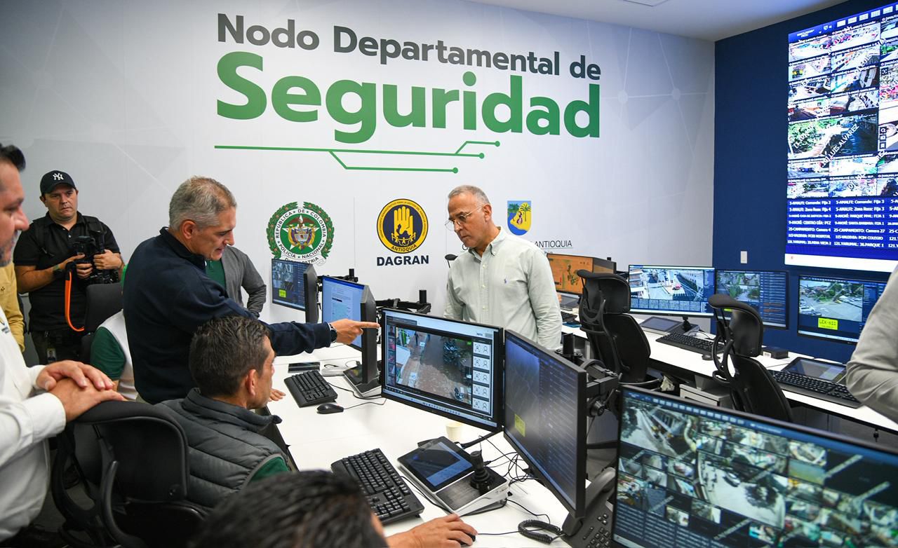 El Gobernador Andrés Julián anunció este jueves que todos los 125 municipios de Antioquia están conectados al Nodo Departamental de Seguridad, luego de la instalación y adecuación de cuatro cámaras y el centro de monitoreo del municipio de Necoclí.