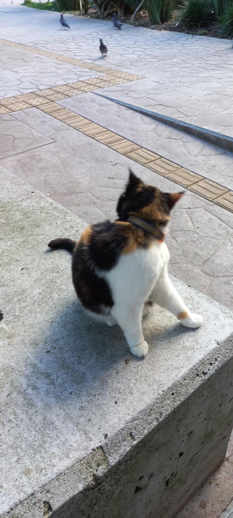 1. El gato Pecas se consiente en el parque principal de El Retiro antes del ataque aleve que sufrió por parte de un perro que iba acompañado de su mascota de dos pies. Calla la Sociedad Protectora de Animales del municipio.